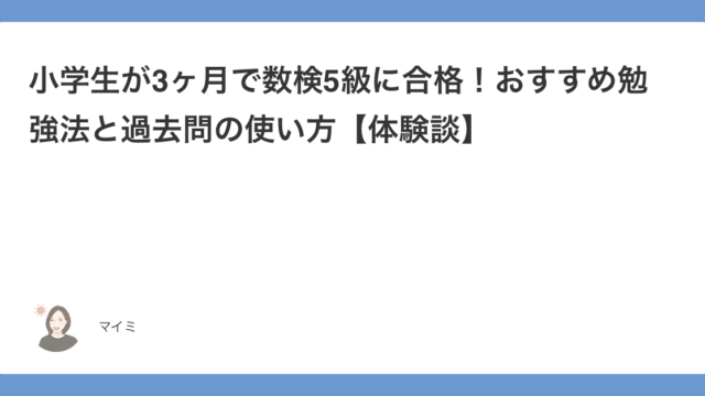 • 小学生が3ヶ月で数検5級に合格!おすすめ勉強法と過去問の使い方【体験談】